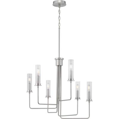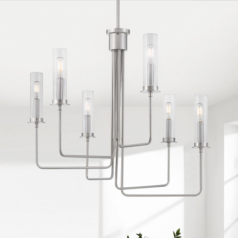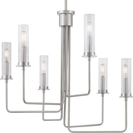 Progress Lighting Rainey Collection 6-Light Clear Fluted Ribbed Glass Modern Chandelier Light Brushed Nickel