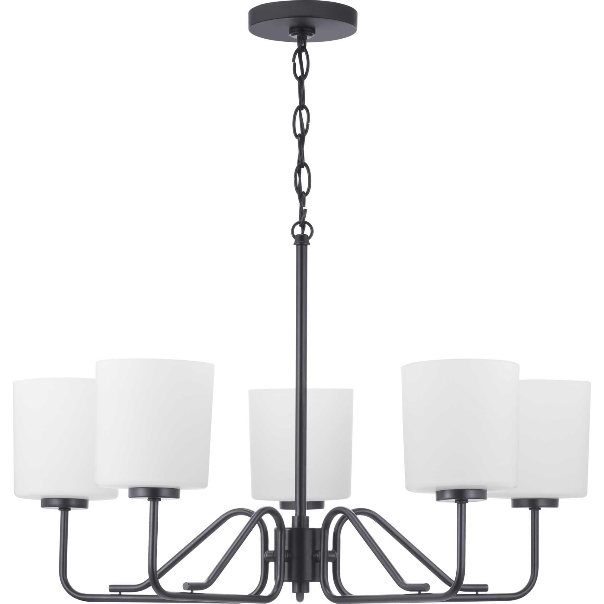 Progress Lighting Tobin Collection 5-Light Etched White Glass Modern Chandelier Light Matte Black