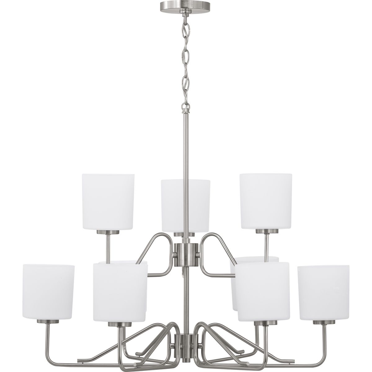 Progress Lighting Tobin Collection 9-Light Etched White Glass Modern Chandelier Light Brushed Nickel