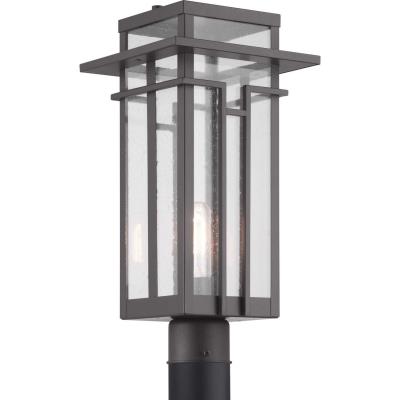 Progress Lighting Boxwood Collection 1-Light Clear Seeded Glass Craftsman Outdoor Post Lantern Light Antique Bronze