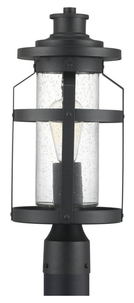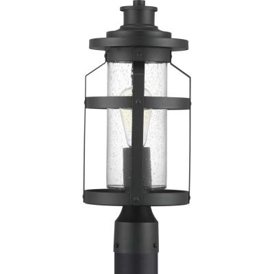 Progress Lighting Haslett Collection 1-Light Clear Seeded Glass Farmhouse Outdoor Post Lantern Light Textured Black