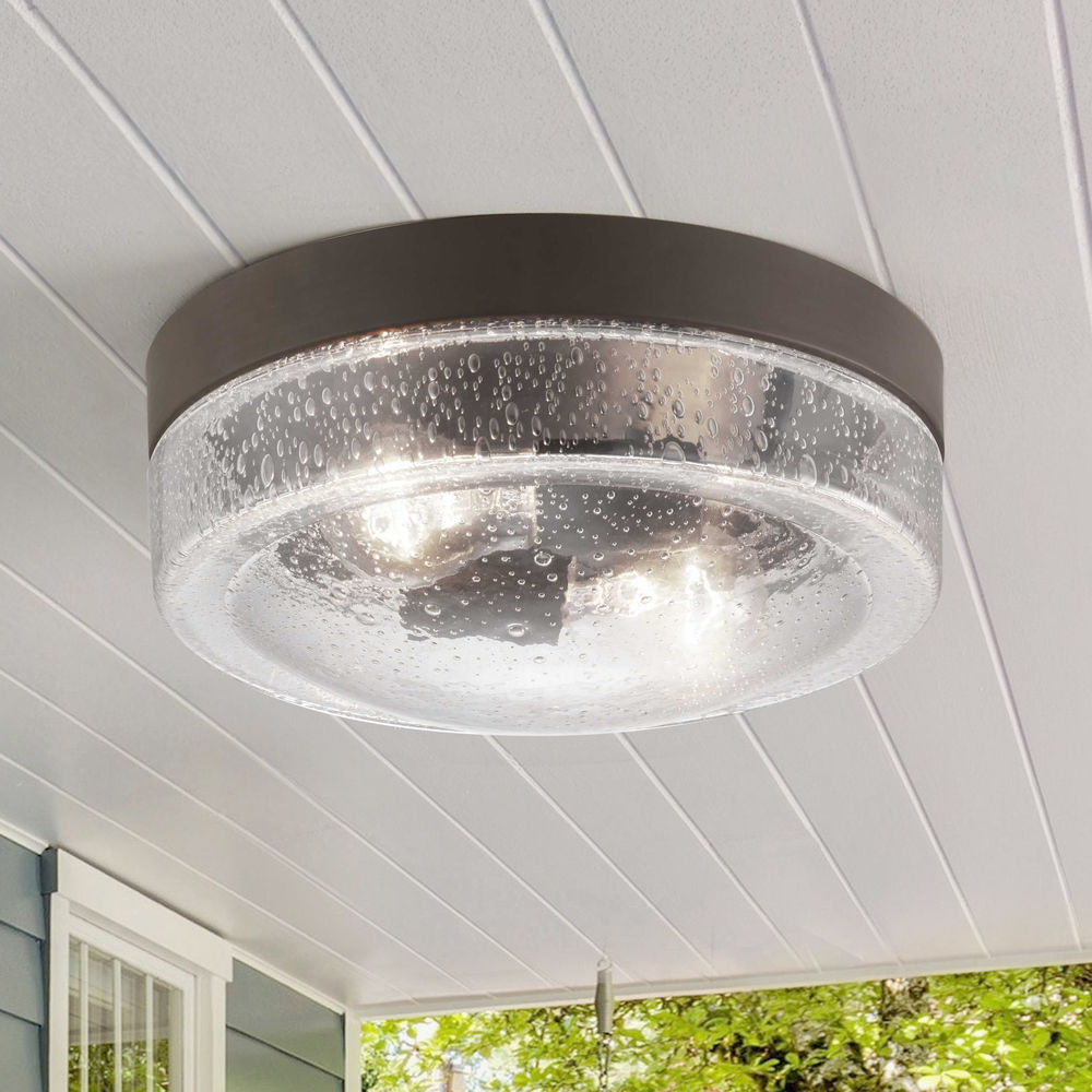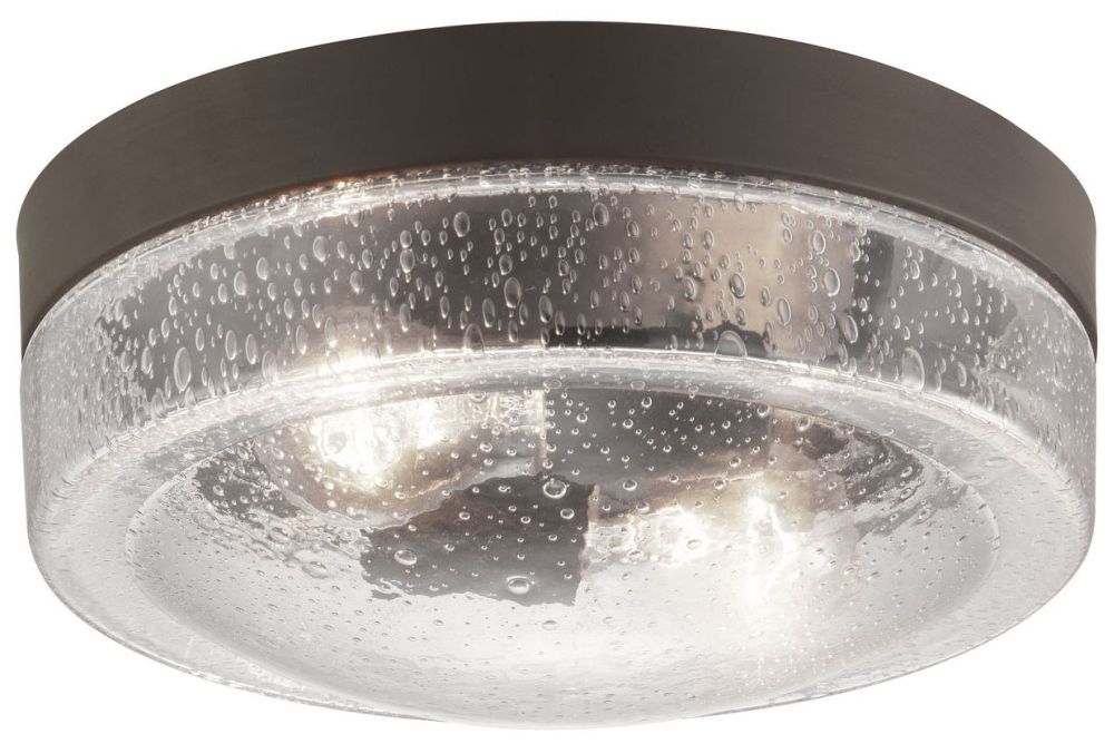 Progress Lighting Weldon Collection 2-Light Clear Seeded Glass Farmhouse Outdoor Ceiling Flush Mount Light Architectural Bronze, 4.50x10.75x10.75