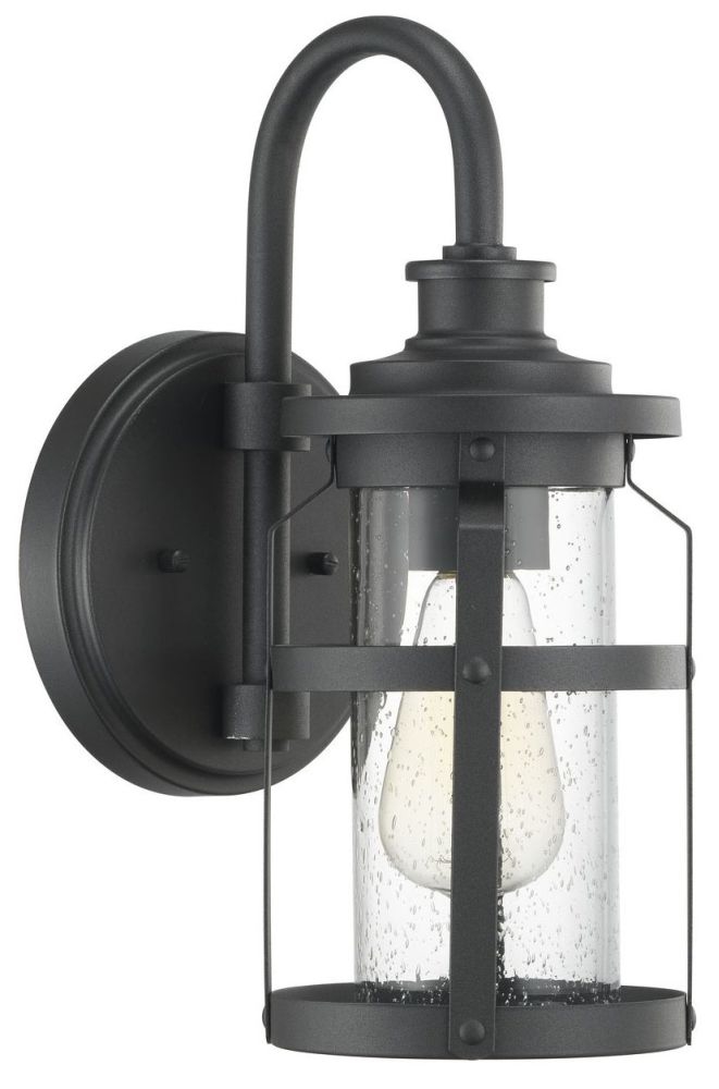 Progress Lighting Haslett Collection 1-Light Clear Seeded Glass Farmhouse Outdoor Small Wall Lantern Light Textured Black
