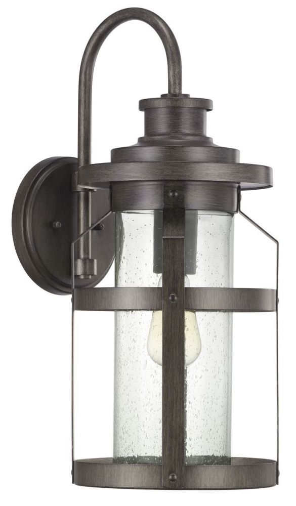 Progress Lighting Haslett Collection 1-Light Clear Seeded Glass Farmhouse Outdoor Large Wall Lantern Light Antique Pewter