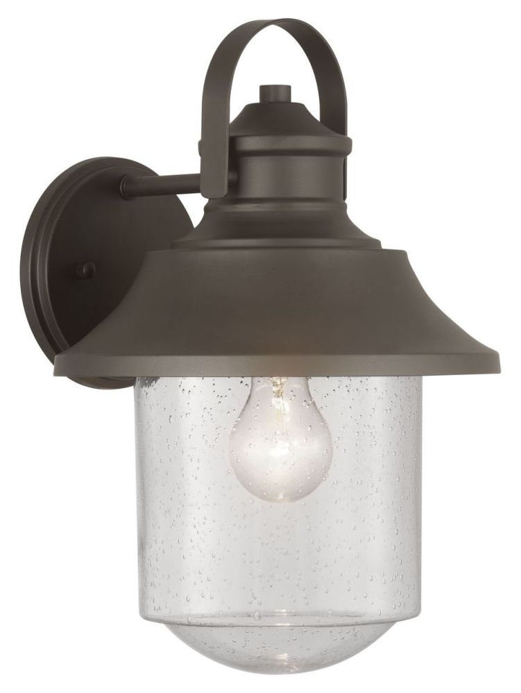 Progress Lighting Weldon Collection 1-Light Clear Seeded Glass Farmhouse Outdoor Large Wall Lantern Light Architectural Bronze
