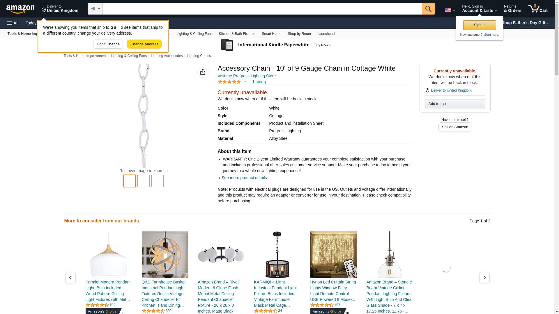 Progress Lighting Accessory Chain - 10' of 9 Gauge Chain in Cottage White