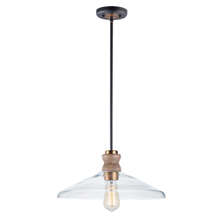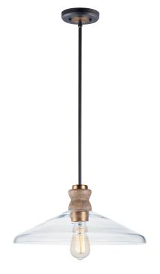 Maxim 10100CLWOAB Nelson Clear Glass Disk Pendant Ceiling Light, 1-Light 60 Watt, 8"H x 16"W, Weathered Oak/Antique Brass