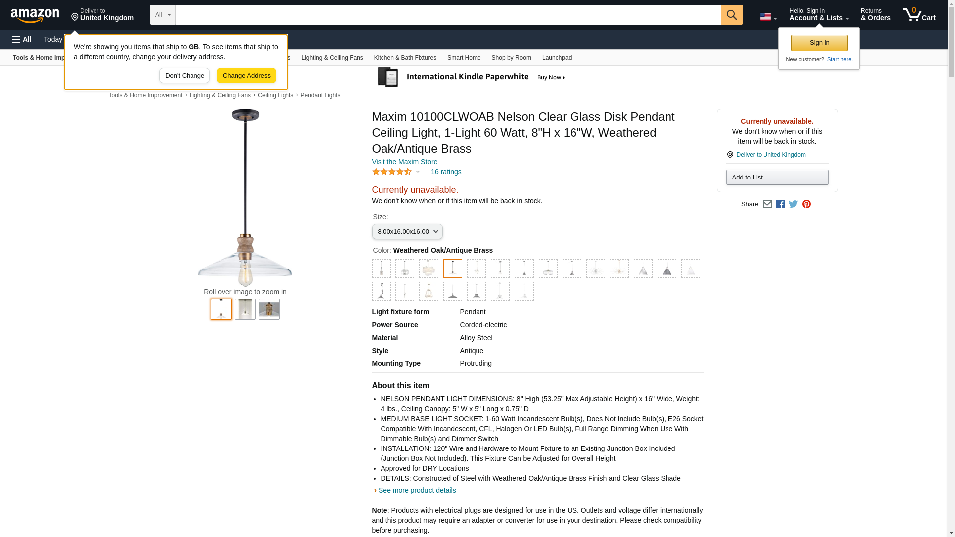 ![]() myknobs.com | MAXIM-LIGHTING-10100CLWOAB | 1 | 1 | 1 @ $238.00 | |