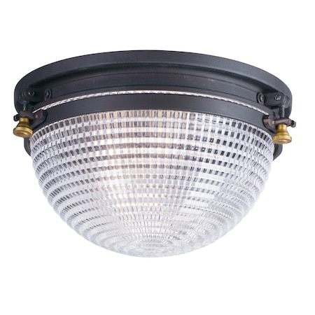 Maxim 10180OIAB Portside Nautical Clear Prismatic Glass Dome Flush Mount, 1-Light 60 Watt, 6"H x 12"W, Oil Rubbed Bronze/Antique Brass