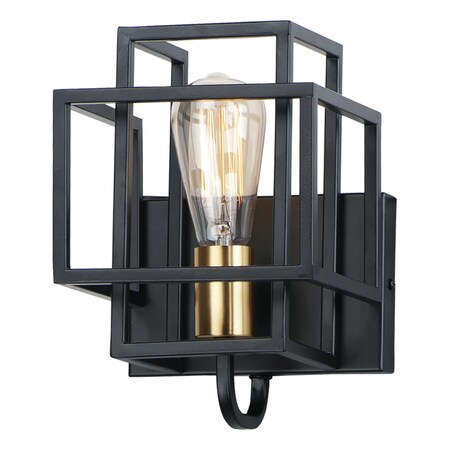 Maxim 10241BKSBR Liner Geometric Square Tubing Wall Sconce, 1-Light 60 Watt, 10"H x 7"W, Black/Satin Brass