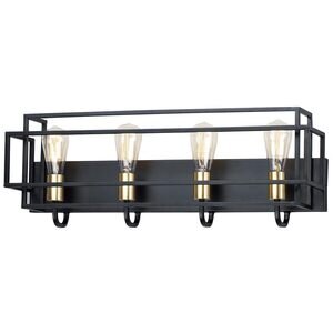 Maxim 10244BKSBR Liner Geometric Bath Vanity Wall Mount, 4-Light 240 Total Watts, 10"H x 29"W, Black/Satin Brass