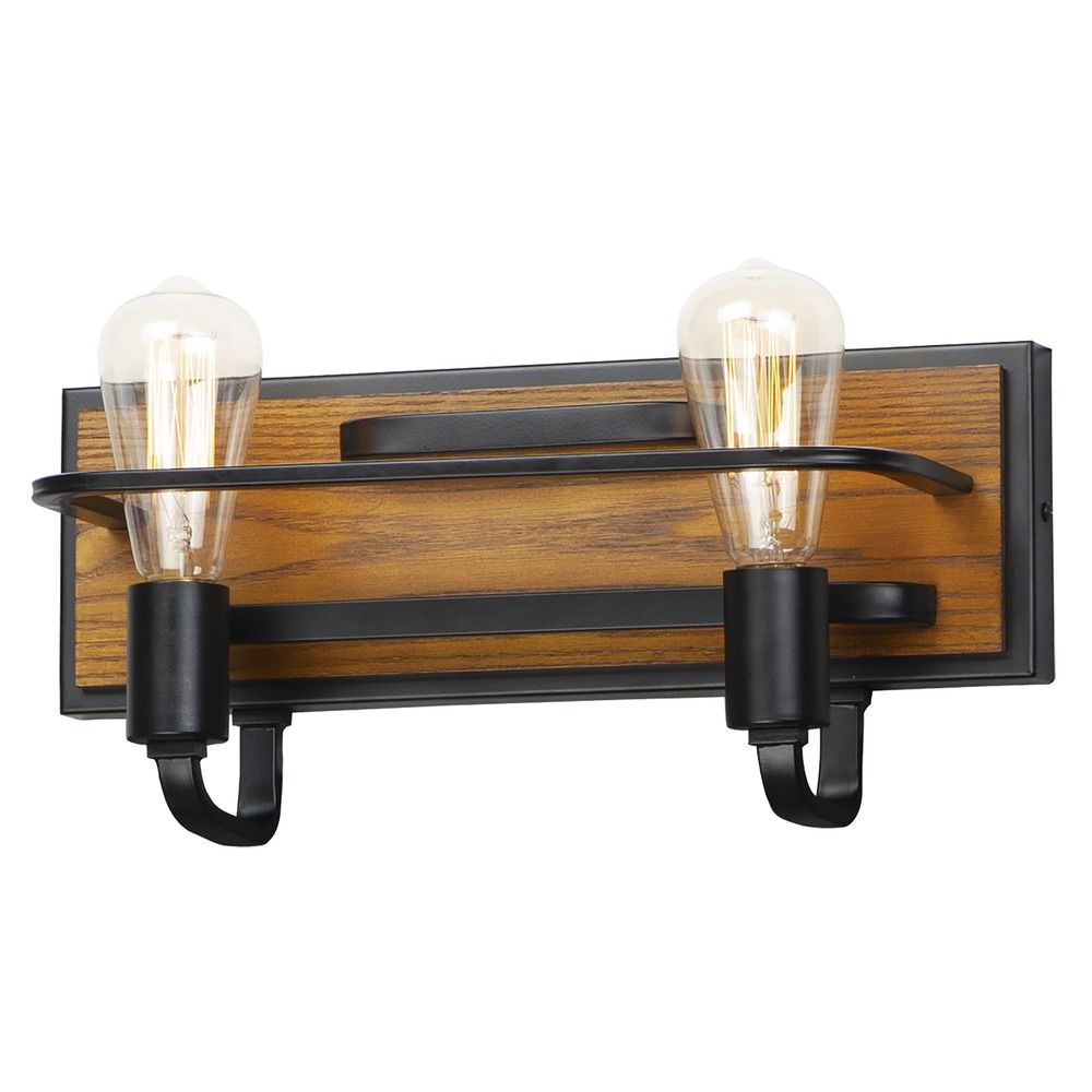 Maxim 10302BKASB Black Forest Industrial Rustic Wood and Metal Bath Vanity Wall Mount, 2-Light 120 Total Watts, 7" H x 16" W, Black/Ashbury