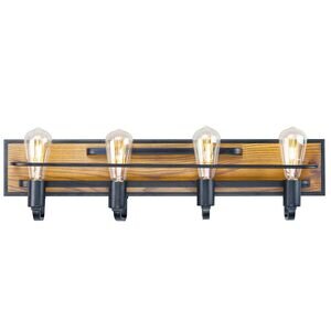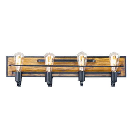 Maxim 10304BKASB Black Forest industrial Rustic Wood and Metal Bath Vanity Wall Mount, 4-Light 240 Total Watts, 7"H x 29"W, Black/Ashbury