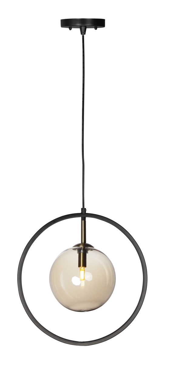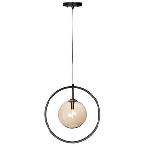 Maxim 11365CMPBKSBR Fluid Minimalist Metal Frame Ring & Large Champagne Glass Ball LED Pendant, 1-Light 4 Watt, 15"H x 7"W x 14"L, Black/Satin Brass