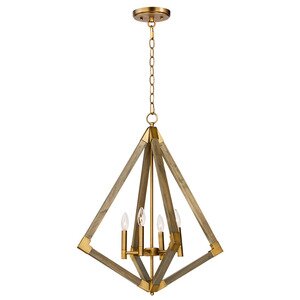 Maxim 12254WOAB Vector Solid Wood Prism Pendant Ceiling Light, 4-Light 240 Total Watts, 29" H x 24" W, Weathered Oak/Antique Brass