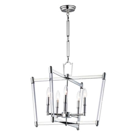 Maxim 16103CLPN Lucent Modern Clear Glass Rods Candle Chandelier, 5-Light 300 Total Watts, 18" H x 23" W, Polished Nickel