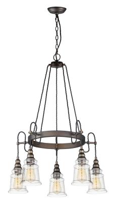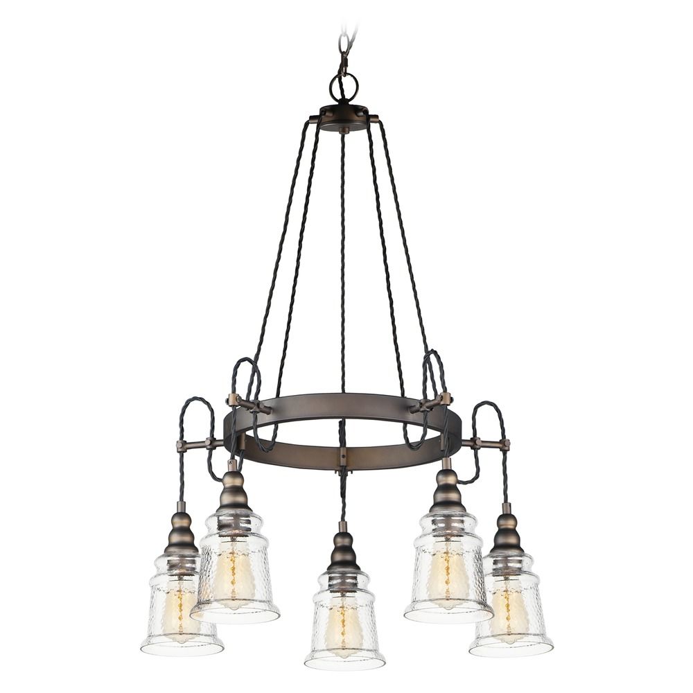 Maxim 21575HMOI Revival Hammer Glass Chandelier, 5-Light 300 Total Watts, 34" H x 27" W, Oil Rubbed Bronze