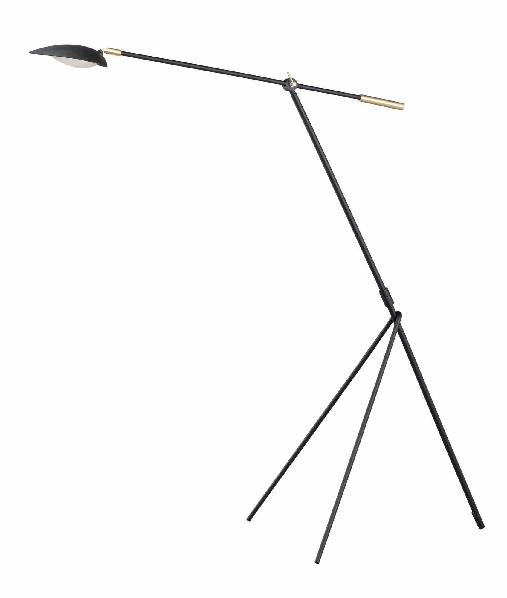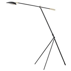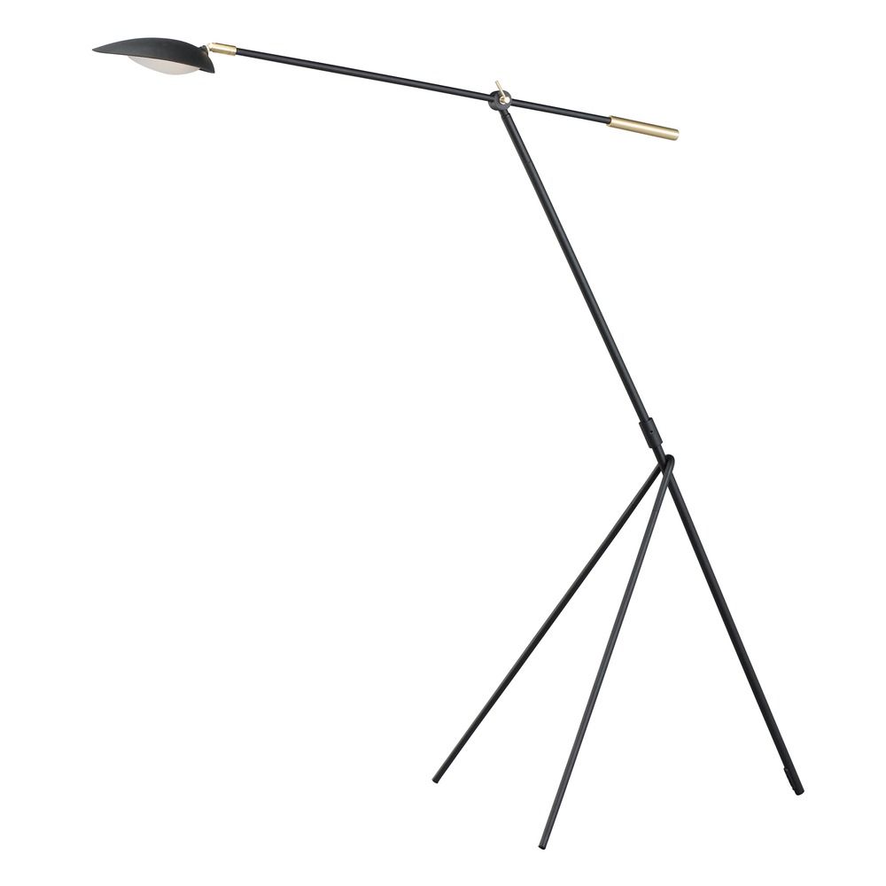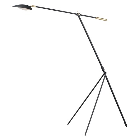 Maxim 21694BKSBR Scan Mid-Century Modern Tapered Hood LED Floor Lamp, 1-Light 6.5 Watt, 61"H x 31"W, Black/Satin Brass