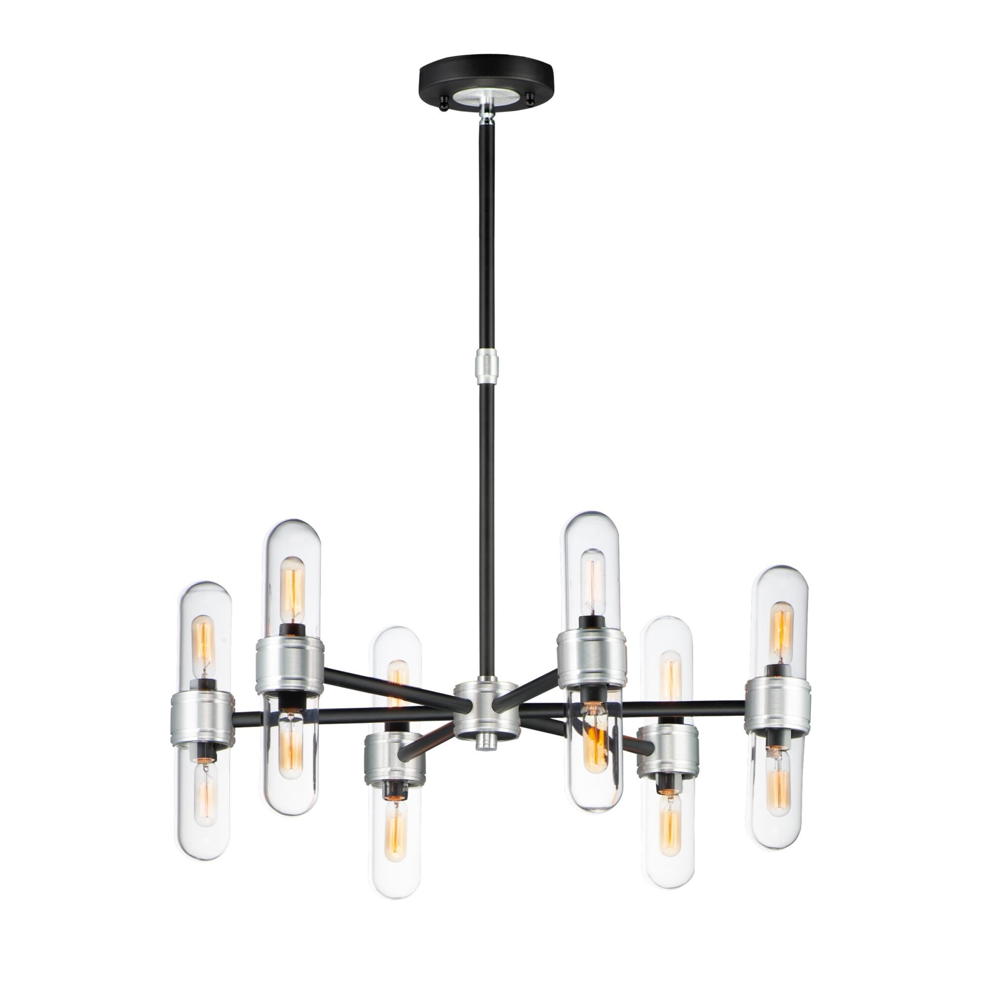 Maxim 21706CLBKAL Dual Clear Dome Glass Round Tube Chandelier, 12-Light 480 Total Watts, 12"H x 26"W, Black/Brushed Aluminum