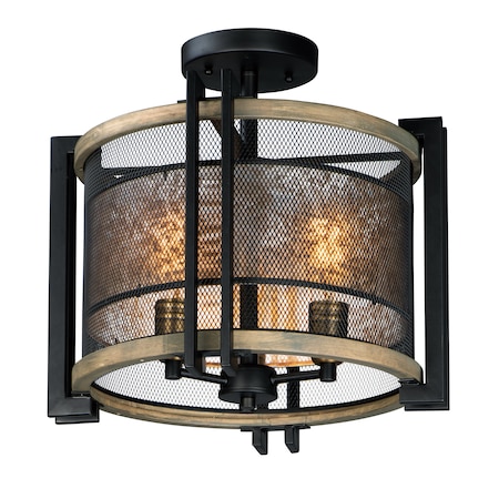 Maxim 27560BKBWAB Boundry Rustic Metal Bracket with Mica Semi Flush Ceiling Light, 3-Light 180 Total Total Watts, 15"H x 17"W, Black/Barn Wood/Antique Brass