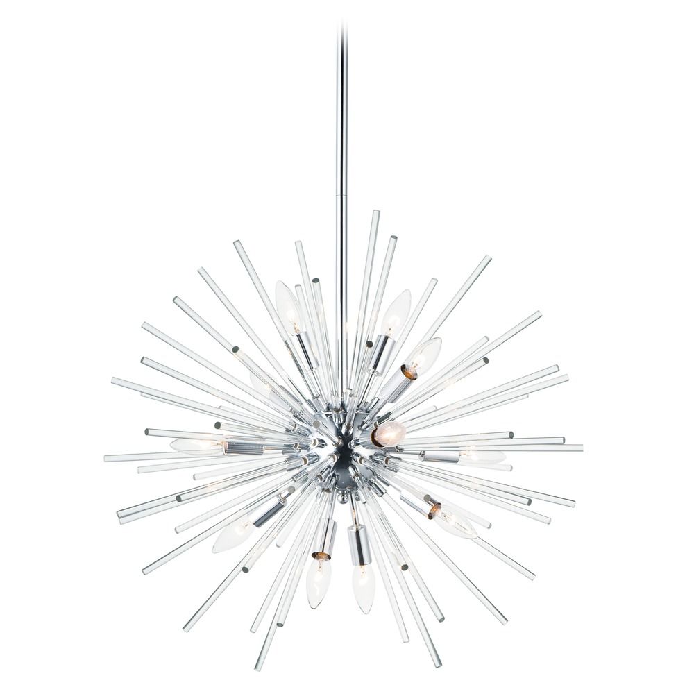 Maxim 28664CLPC Polaris Glass Rods Sputnik Pendant Ceiling Light, 12-Light 720 Total Watts, 23" H x 25" W, Polished Chrome