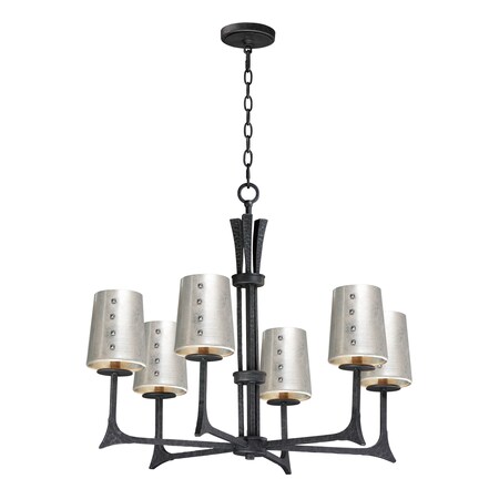 Maxim 30305NI/SHD308GV Anvil Blacksmith Galvanized Metal Shade Chandelier, 6-Light 360 Total Watts, 24"H x 29"W, Natural Iron