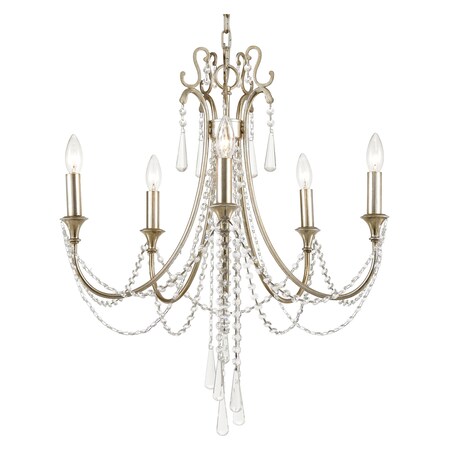 Arcadia 5 Light Antique Silver Crystal Chandelier