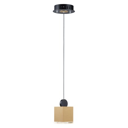 ET2 E20860-75BKGLD Nob Geometric Metal and Acrylic Cube LED Pendant Ceiling Lighting, 1-Light 5 Watt, 7"H x 4"W x 4"L, Black/Gold