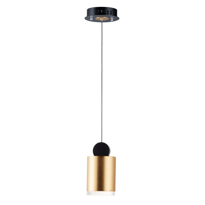 ET2 E20862-75BKGLD Nob Geometric Metal and Acrylic Cylinder Mini LED Pendant Ceiling Lighting, 1-Light 7.2 Watt, 8"H x 4"W, Black/Gold