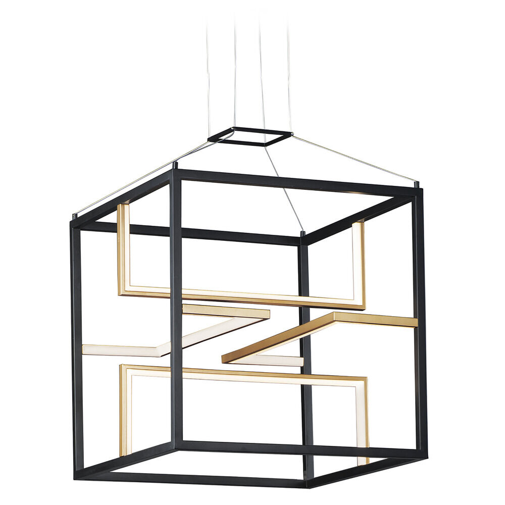 ET2 E21224-BKGLD Chamber Unique Architectural Square LED Pendant Ceiling Lighting, 4-Light 176 Total Watts, 19" H x 18" W x 18" L, Black/Gold