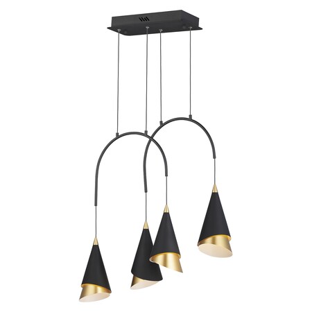 ET2 E21444-BKMG Mermaid Unique Rotatable Metal Arc LED Rectangular Pendant Ceiling Lighting, 4-Light 28.8 Total Watts, 30"H x 6"W x 23"L, Black/Metallic Gold