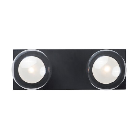 ET2 E21452-93BK Pod Clear and Frosted Glass Globe LED Bath Vanity Wall Lighting, 2-Light 8 Total Watts, 5" H x 14" W, Black
