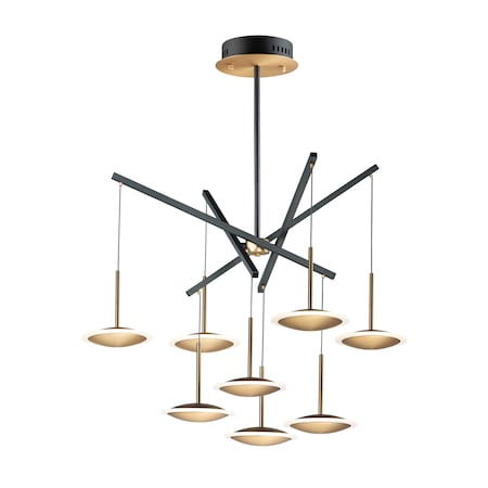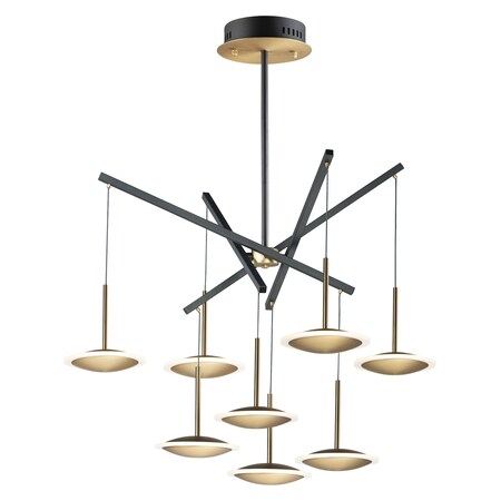 ET2 E21548-90BKGLD Saucer Unique Frost Acrylic LED Pendant Ceiling Lighting, 8-Light 64 Total Watts, 8"H x 36"W, Black/Gold