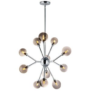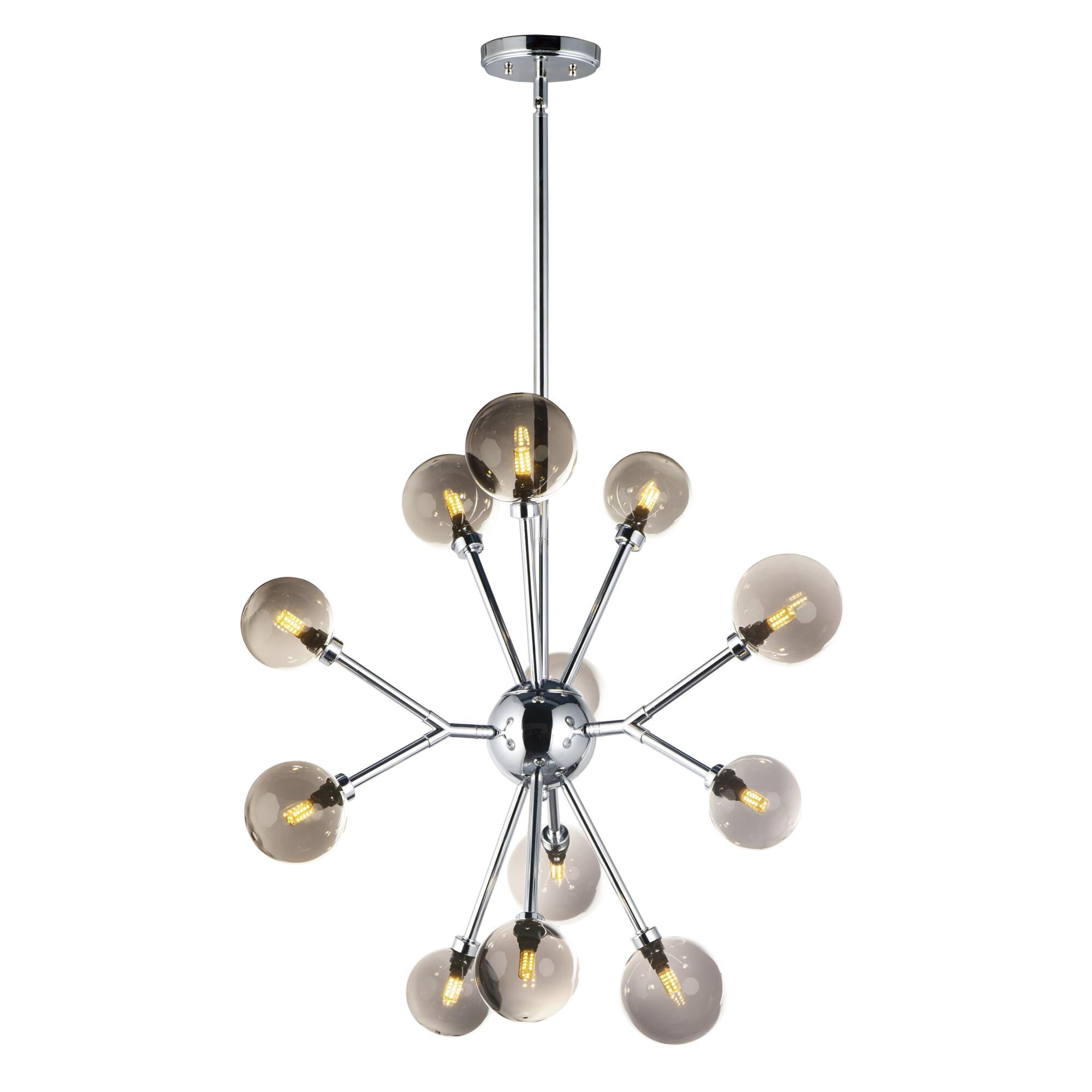 ET2 E24825-138PC Asteroid Mirror Smoke Glass Sputnik LED Pendant Ceiling Lighting, 12-Light 48 Total Watts, 27"H x 28"W, Polished Chrome