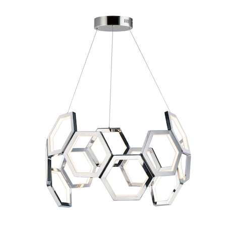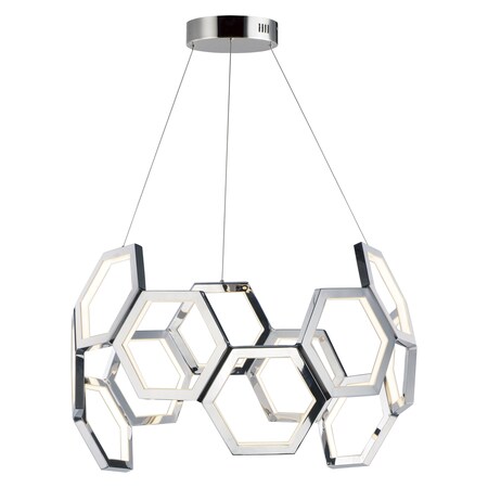 - Hexagonal shaped sections of Polished Chrome are artfully attached to create this magnificent lighting form