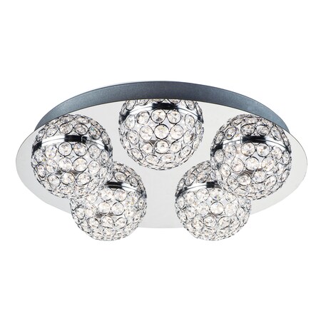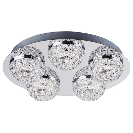ET2 E31220-20PC Eclipse Beveled Crystal Beads Metal Spun Round LED Flush Mount, 5-Light 27 Total Watts, 4"H x 16"W, Polished Chrome