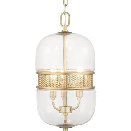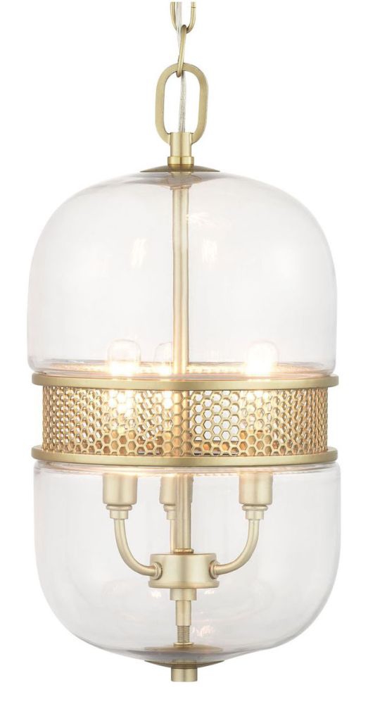 9 in. 60W 3-Light Candelabra E-12 Incandescent Clear Glass Pendant in Vintage Gold
