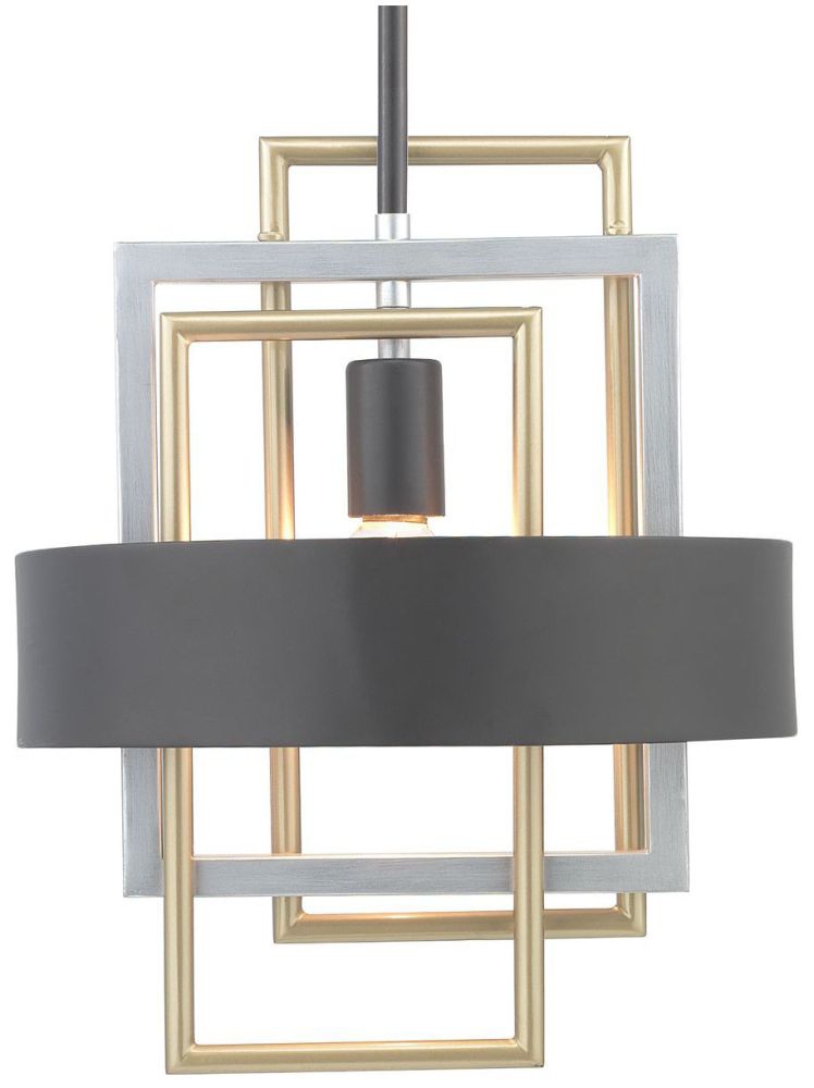 - A Black frame surrounds sculptural elements in Brushed Silver and Brushed Gold
