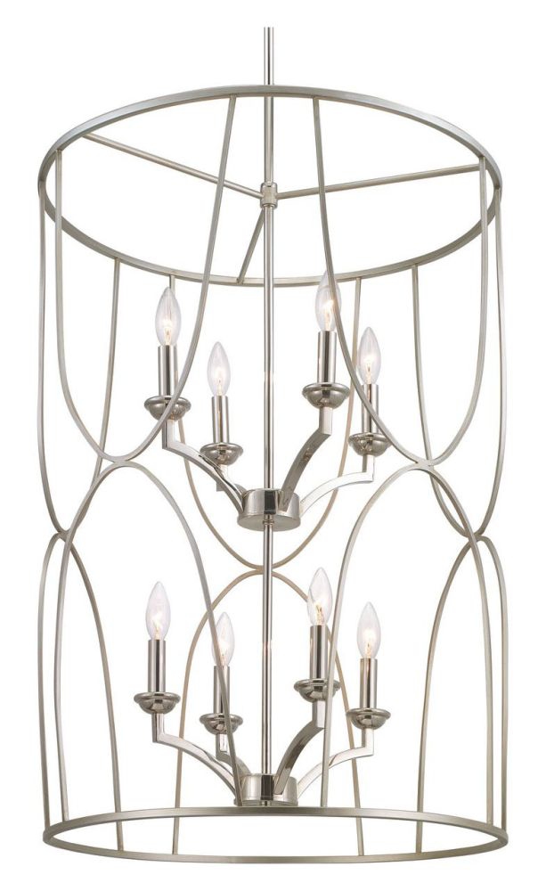 - The two-tiered eight-light chandelier works beautifully in a tall entry foyer, vaulted family room or living room