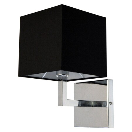 <b>Features</b><br> <li>Dimension: W 6 in. x H x 10.50 in. <li>Extension/Depth: 7.50 in. <li>Backplate/Canopy Width: 4.75 in. <li>Backplate/Canopy Length: 4.75 in. <li>Backplate/Canopy Thickness: 0.75 in. <li>Install Position: Wall <li>Included Suspension: 8in. Cord<br> <b>Additional Details</b><br> <li>1 Light Incandescent Wall Sconce, Polished Chrome with Black Shade Finish <li>1 - 6x6x6 with Solid Washer Fitter Shade <li>Assembly Required <li>ELV Dimmer Recommended <li>Connection Type: Hardwire <li>Design Information <li>Finish: Polished Chrome <li>Shade: Hardback Black <li>Material: Metal <li>Bulb Category: Incandescent <li>Primary Bulb(s): 1 x 60 watts E12 <li>Ambient Light <li>Voltage: 120V <li>Safety Rating: cUL,UL,CSA Dry<br><br> Dainolite has a long and successful history of supplying lighting products. They work diligently to create a comprehensive selection of styles and designs as well as maintaining high standards of product quality and value.