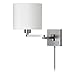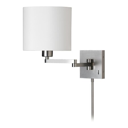 1 Light Cast Metal Swing Arm Lamp, Tapered Drum Shade Satin Chrome/White/8"Lx11"Dx11"Wx12"H