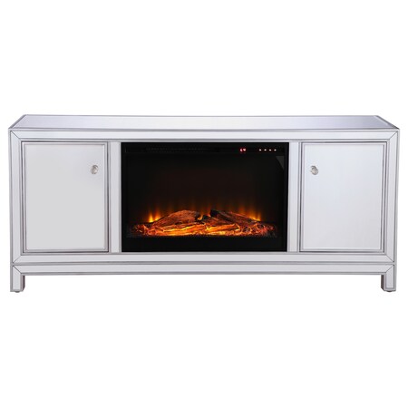 Sleek and vibrant, this classy media fireplace cabinet combo will make a striking statement in any room can showcase up to a 60" flat screen TV at a perfect height. Featuring gleaming criss-cross style mirror panel and hand-rubbed silver finish, brushed steel knobs. Functional and chic, with 2 soft-closing side doors. This includes the electric wood log fireplace insert that is easy to install into the cabinet. Set the mood with adjustable temperature and lighting settings.