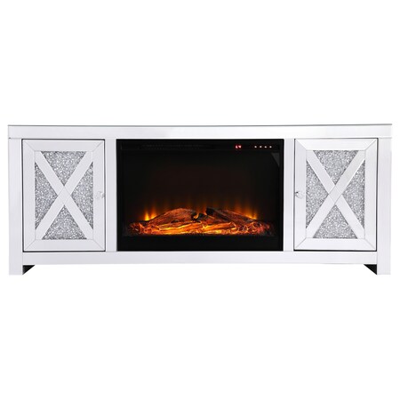 59 In. Crystal Mirrored TV Stand With Wood Log Insert Fireplace : MF9903-F1 | Brechers Lighting