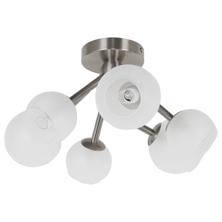 <b>Features</b><br> <li>Dimensions: W: 17.00 in.H: 10.00 in. <li>Extension/Depth: 17.00 in. <li>Backplate/Canopy Width: 4.75 in. <li>Backplate/Canopy Length: 4.75 in. <li>Backplate/Canopy Thickness: 1.00 in. <li>Install Position: Ceiling<br><br> <b>Other Specifications</b><br> <li>Included Lead Wire: 8in. <li>6 Light Halogen Semi Flush, Satin Chrome Finish with Frosted Glass <li>Line Voltage Incandescent/Halogen Dimmer Recommended <li>Connection Type: Hardwire <li>Design Information <li>Finish: Satin Chrome <li>Glass: Frosted <li>Material: Metal/Glass <li>Bulb Category: Halogen <li>Primary Bulb(s): 6 x 25 watts G9 Standard</br><br> <b>Additional Bulb Details</b> <li>360 Degree Beam Spread <li>Down Light <li>Assembly Required/Tools Required <li>Connection Type: Hardwire <li>Voltage: 120V <li>Outdoor Rating: Indoor Only <li>Safety Rating: cUL,UL,CSA Dry<br><br> Dainolite has a long and successful history of supplying lighting products. They work diligently to create a comprehensive selection of styles and designs as well as maintaining high standards of product quality and value.