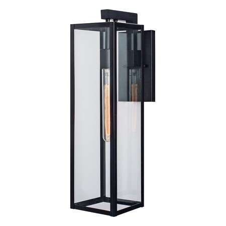 Collection: Capture, Material: Brass, Finish Color: Matte Black, Width: 5.5", Height: 21", Length: 21", Depth: 8.5", Backplate Width: 8", Backplate Length: 4.75", Lamping Type: Incandescent, Number Of Bulbs: 1, Wattage: 75 Watts, Dimmable: Yes, Moisture Rating: Wet Rated, Desc: The Capture Outdoor series with angular lines and clear glass surfaces offers ample illumination to any outdoor space it occupies. Room Recommendation: Outdoor / Assembly Required: Yes / Mounting Direction: Down / Back Plate Height: 4.75 / Back Plate Width: 8.00 / Dimmable: Yes / Shade Included: Yes. ,