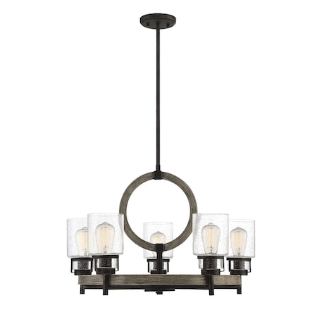 Savoy House 1-2130-5-101 Hartman 5-Light Chandlier in Noblewood with Iron Finish with Clear Seeded Glass (26.5" W x 16.5" H)