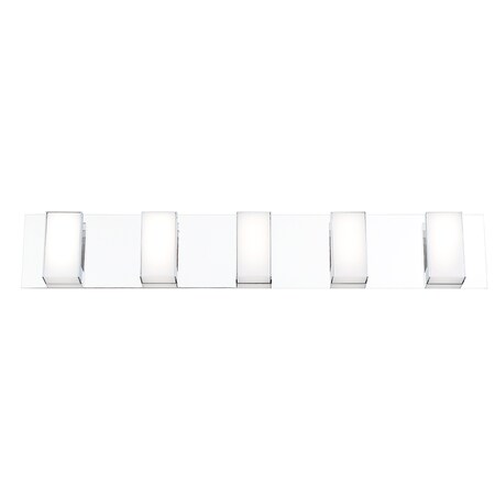 Eurofase Lighting-35653-011-Collection: Delrosa, Material: Metal, Width/Diameter: 30.75", Height: 5", Depth/Extension: 3", Back Plate Width: 4.25", Back Plate length: 1.50", Lamp: 5-7w bulb(s), UL: Suitable for damp locations, - Desc: Delrosa 5-Light LED Bathbar, Chrome Finish with A frosted bracket of diffused LED light housed in chrome. Product Type: BathbarFixture Style: ContemporaryCable/Wire Length: 120 inchesMounting Capability: Up or DownMounting Type: J-BOXLocation Type: DAMP LocationBulbs Included: YesLumens: 2800Bulb Kelvin: 3000Dimmable: YESMore information: 5 x 7W/LED 3000K/2800lm (dimmable)More Information: Frosted Acrylic IncludedMore Information: Rated for damp locationsCanopy Backplate Length: 30 InchesCanopy Backplate Height: 1.5 InchesCanopy Backplate Width: 4.25 Inches-Delrosa - 30.75 Inch 35W 5 LED Bath Bar Chrome Finish with White Acrylic Glass