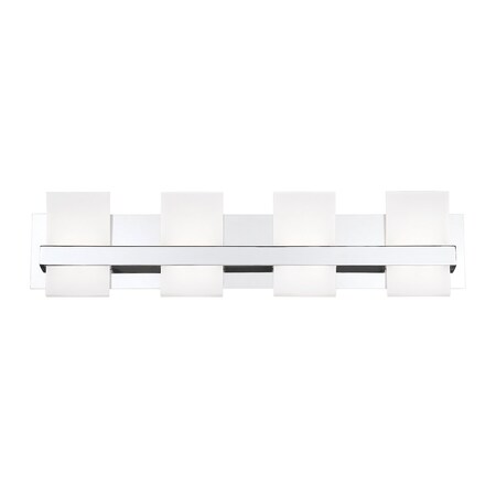 Eurofase Lighting-35656-012-Collection: Cambridge, Material: Metal, Finish Color: Chrome, Width: 28.75", Height: 7", Depth: 3.25", Backplate Width: 4.5", Backplate Length: 1.25", Lamping Type: LED, Number Of Bulbs: 4, Wattage: 7.5 Watts, Cri: 90, Color Temperature: 3000 Kelvin, Lumens: 2400, Dimmable: Yes, Moisture Rating: Damp Rated, Desc: Cambridge 4-Light Led Bathbar, Chrome Finish With A Strong Architectural Chrome Frame Featuring A Thick Frosted Diffuser. Product Type: Bathbar / Fixture Style: Contemporary / Cable/Wire Length: 120 Inches / Mounting Capability: Up Or Down / Mounting Type: J-Box / Location Type: Damp Location / Bulbs Included: Yes / Lumens: 2400 / Bulb Kelvin: 3000 / Dimmable: Yes / More Information: 4 X 7.5W/Led 3000K/2400Lm (Dimmable) / More Information: Frosted Acrylic Included / More Information: Rated For Damp Locations / Canopy Backplate Length: 28.25 Inches / Canopy Backplate Height: 1.25 Inches / Canopy Backplate Width: 4.5 Inches . ,-Cambridge - 30W 4 Led Bath Bar - 28.75 Inches Wide By 7 Inches High