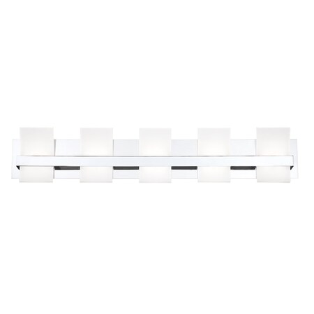 Eurofase Lighting-35657-019-Collection: Cambridge, Material: Metal, Finish Color: Chrome, Width: 36.25", Height: 7", Depth: 3.25", Backplate Width: 4.5", Backplate Length: 1.25", Lamping Type: LED, Number Of Bulbs: 5, Wattage: 7.5 Watts, Cri: 90, Color Temperature: 3000 Kelvin, Lumens: 3000, Dimmable: Yes, Moisture Rating: Damp Rated, Desc: 3000Lm (Dimmable) More Information: Frosted Acrylic Included / More Information: Rated For Damp Locations / Canopy Backplate Length: 35.75 Inches / Canopy Backplate Height: 1.25 Inches / Canopy Backplate Width: 4.5 Inches . ,-Cambridge - 36.25 Inch 37.5W 5 Led Bath Bar
