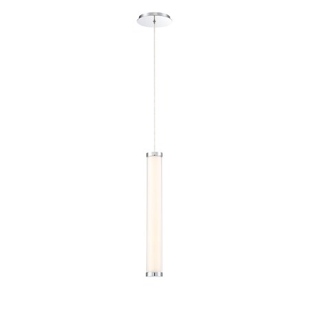 Eurofase 35682-011 Shaw Opaque Tube & Clear Acrylic Mini Cylinder LED Pendant Light, 1-Light 20 Watt, 18" H x 3" Dia, Chrome